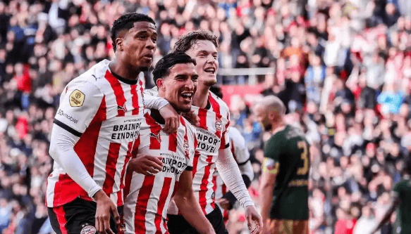 这下,埃因霍温在还剩5轮的情况下领先第二名17分,数学上已无任何翻盘可能。于是,他们提前加冕,实现荷甲三连冠,队史第27次捧起联赛金杯!